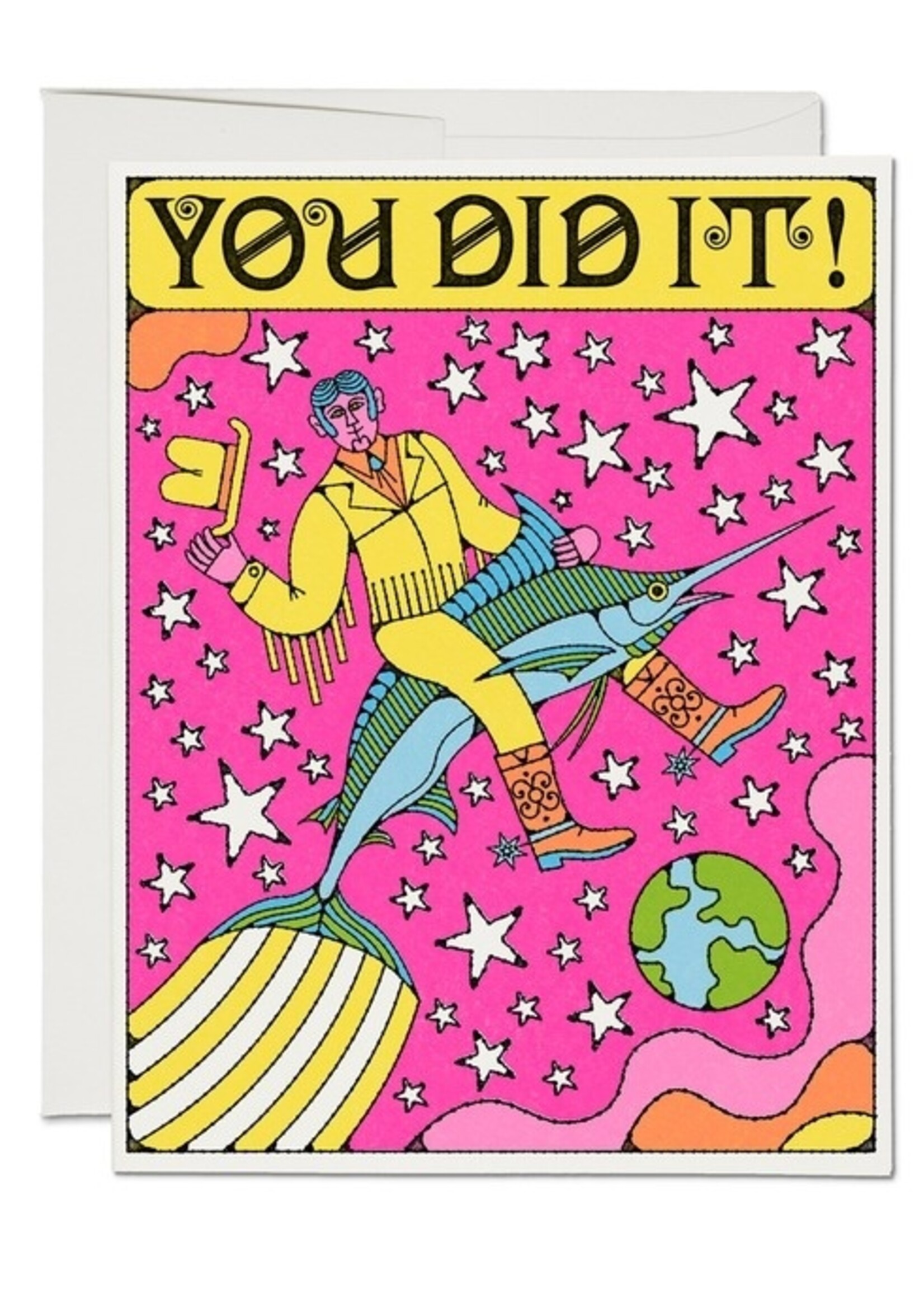 Let your friends know you see what they did with this out of this world card from Nolan Pelletier and Red Cap Cards. Blank inside.